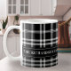 Personalise this stylish mug with your family name and date established or other custom text. Background pattern features a classic black and white tartan plaid pattern. A great accent for the fall and Christmas holidays.