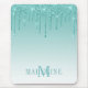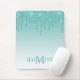 Modern Fashionable Teal Glitter Drip Monogram Mouse Pad