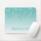 Modern Elegant Fashionable and Trendy Teal Glitter Mouse Pad personalised with your Name. Dripping Glitter with sparkles.