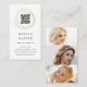 Striking business cards feature an abstract element in faux gold, encircling a customisable QR code. Personalise with three custom text fields beneath, for your name or business name, title, and contact details. Add three photos to the back to showcase your photography, aesthetics, or hair and makeup.