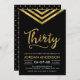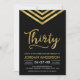 Modern 30th Birthday invitation featuring an elegant geometric chevron and the word "Thirty" in faux gold against a black background. Card includes a matching pattern back side. Check out matching items here http://www.zazzle.com/collections/modern_faux_gold_chevron_celebration_collection-119531050277382712?rf=238364477188679314