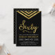 Modern 60th Birthday invitation featuring an elegant geometric chevron and the word "Sixty" in faux gold against a black background. Card includes a matching pattern back side. Check out matching items here http://www.zazzle.com/collections/modern_faux_gold_chevron_celebration_collection-119531050277382712?rf=238364477188679314