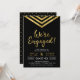 Modern Engagement Party invitation featuring an elegant geometric chevron and the words "We're Engaged" in faux gold against a black background. Card includes a matching pattern back side. Check out other matching items here http://www.zazzle.com/collections/modern_faux_gold_chevron_celebration_collection-119531050277382712?rf=238364477188679314