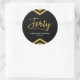 This elegant round sticker features a modern geometric chevron and the word "Forty" in faux gold against a black background. It's great for a 40th birthday celebration. Check out matching invitations and items here http://www.zazzle.com/collections/modern_faux_gold_chevron_celebration_collection-119531050277382712?rf=238364477188679314