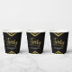 These chic paper cups feature elegant geometric chevron and the word "Forty" in faux gold foil against black background. It's great for a 40th birthday celebration.