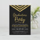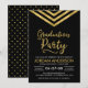 Modern Graduation Party invitation featuring an elegant geometric chevron and the word "Graduation Party" in faux gold against a black background. Card includes a matching pattern back side.