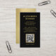 Modern and sleek business card design for a hair stylist or other professional features a QR code that customers can scan for menu services or payment. Customise the company information and employee contact information. Space to include an Instagram social tag and Venmo username for payment and tips. Card features stylish faux gold foil, gold and black printed colours.