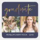 Modern and chic sticker with faux gold graduate script typography, two photos, name and class year in white text on a navy blue background.