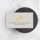An abstract, circular motif of numbers creates an intriguing logo on this modern business card for accountants and accounting service professionals. Shown in faux gold on grey for an eye-catching look. Original art and design © 1201AM CREATIVE