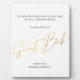 Remind your wedding guests to sign your wedding guest book with this simple and minimal modern Guest Book Sign. Faux gold calligraphy script on white background. Simply replace placeholder text with text of your choice and your own names.