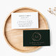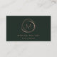Striking business cards feature an abstract element in faux rose gold, encircling your initials or monogram in modern calligraphy script, on a rich hunter green background. Personalise with two custom text fields beneath for your name and title or business name. Add your full contact details to the reverse side. Suitable for any occupation; example shown for hair and makeup artists. NOTE: THERE IS NO FOIL ON THIS PRODUCT. The rose gold effect is created using subtle colour variations that mimic the look of foil.