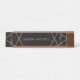 This stylish nameplate features a black marble look background with a faux rose gold geometric design.