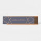 This stylish nameplate features a rich, midnight blue background with a faux rose gold geometric design.