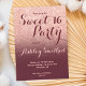 A modern, pretty faux rose gold glitter shower ombre with burgundy colour block Sweet 16 birthday party invitation with rose gold ombre pattern fading onto a burgundy merlot background. Perfect for a princess Sweet sixteen, perfect for her, the fashionista who loves modern pattern and glam