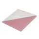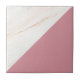This modern and trendy ceramic tile features a diagonally placed design with faux rose gold and marble textures.