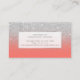 Modern faux silver glitter with customisable coral with faux silver gold frame ombre makeup artist business card.