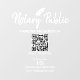 Elegant notary public business window decal is perfect for your marketing efforts! The custom notary decal is able to be edited to fit your brand. The modern minimalist sign features a transparent background with white script font and includes the notary name, a built-in editable QR code, business website, and social media icons and the quote "follow me" along with both Facebook and Instagram icons.