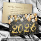 Modern Elegant Black and Gold Balloon Confetti 2025 Happy New Year Eve Holiday Card