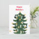 Classic black and white chess piece ornaments on Christmas tree, holiday card for chess lovers. Modern chess pieces design