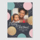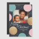 A modern Christmas card with colourful festive - gold glitter, pink, and blue - dots. The phrase "Merry Christmas" is set in an whimsically handwritten font. Personalise this holiday magnetic card with your photo and text.