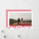 This modern yet elegant holiday photo card features a single horizontal photo over a classic white background, and a greeting in red script which says "Happy Holidays". This design accommodates a single horizontal photo on the front. The back of the card is a coordinating red and white stripe pattern, but can be removed if desired. You can also add another photo and/or additional text to the back.