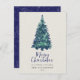 Modern Festive Snowy Blue Christmas Tree Holiday Postcard