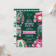 This modern ugly sweater design features 6 festive ugly sweaters in a colour palette of red, green and pink, these jumpers have fun motifs such as Santa, reindeers, Christmas trees and a snowman surrounded by holly and berries, winter greenery, snowflakes and stars on a dark green background. On the back of the design is a faux knitted sweater design with lots of Christmas motifs. You can customise all the details for your event. You can modify this design for an office Christmas party by changing the host name to a company name. See the whole matching collection.