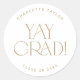 This modern fete gold yay grad graduation sticker is perfect for a simple grad party. The design features elegant boho typography with a touch of sophisticated style in minimalist gold and white.