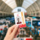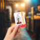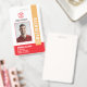 A modern id badge for firefighters and employees of the fire department. The design includes the firefighter's personal photo, name, badge ID and expiry date. Additionally it has a fire department logo and name. The word "Firefighter" is written in bold capital letters using the vertical layout.