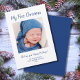 Modern First Christmas greeting card, with a cute baby boy theme and customisable blue typography lettering. With a photo template, you replace with your own baby photo. Great for announcing your new addition this holiday season.