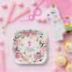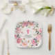 These modern, elegant first communion square paper plates come in 2 sizes and feature a beautiful floral watercolor wreath of pink garden flowers around a pink cross, your daughter's name, occasion and date, perfect for a girl's first holy communion. MATCHING items available in our collection.