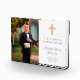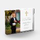Personalised Modern First Holy Communion Boy Picture Photo Block Home Décor. Part of the Dusty Blue Script Cross Boy First Communion Suite with matching invitation, stationery and first communion party accessories.