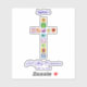 Modern and abstract First Holy Communion illustration featuring a cross with minimalist colourful First Holy Communion symbols.