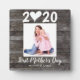 Modern First Mother's Day Script Heart Wood Photo Plaque
