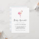This elegant and modern baby sprinkle invitation features a trendy pink watercolor flamingo and a minimalist design, with a neutral grey striped back.