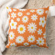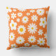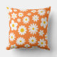 Whimsical modern throw pillow featuring scattered flat white daisies with sunflower gold centres over a bold orange background. Contact for assistance in customising or for personalisation.