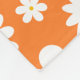Whimsical modern fleece blanket featuring scattered flat white daisies with sunflower gold centres over a bold orange background. Contact for assistance in customising or for personalisation.