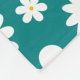 Whimsical modern fleece blanket featuring scattered flat white daisies with sunflower gold centres over a bold teal blue background. Contact for assistance in customising or for personalisation.