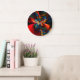 Modern Floral Abstract Art Orange Blue Pattern #14 Round Wall Clock