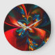 Modern Floral Abstract Art Orange Blue Pattern #14 Large Clock