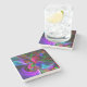 The coasters are gorgeous, a quality feel and heavy weight. They look like a precious archeological find. A rustic stone juxtaposed with a modern floral black and white print. I like the way the print goes slightly imperfect on the cut stone edges giving them a kind-of natural beauty.