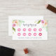 Elegant floral business cards feature a bouquet of watercolor painted peony and rose flowers in pastel shades of blush pink and spring green, framing a 10-punch loyalty program with pink lip print kisses. Personalise with your own loyalty terms and add your contact information to the reverse side. A chic choice for makeup artists, lip colour distributors and beauty retailers.
