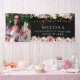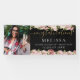 Modern Floral Black Gold Script Photo Graduation Banner