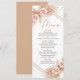 Boho floral with pampas grass menu featuring two floral arrangements, gold geometric line art and grunge texture. Suitable for various occasions.