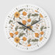 Modern and Elegant Floral Botanical Pattern Golden White Wall Clock