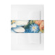A modern floral wedding invitation belly band featuring a bold botanical pattern in blue and orange blooms.