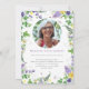This is a bright and modern memorial invitation card to celebrate the life of your loved one. The design features a calligraphy font with lovely botanical ivy and fern greenery as well as florals including purple pansies and hyacinths, plus yellow daffodils. This invitation can easily be personalised with your own photo and text to create a special tribute for your loved one's funeral, memorial or celebration of life using the template provided.