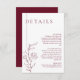 Modern Floral Chic Burgundy Wedding Details Enclosure Card