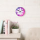 Modern Floral Colourful Pink Blue Ombre Round Clock