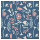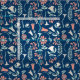 Get lost in the garden with this patterned material. The fabric features modern style illustrations of flowers in coral and cream or ivory on mint green coloured stems all set against a navy blue background.